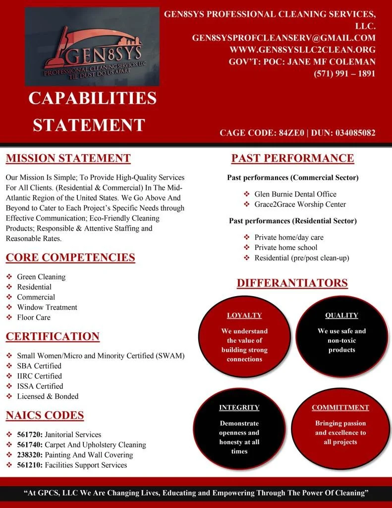 Gen8sys professional cleaning services, LLC was launched in 2017 but fully operational in 2020. However, due to covid19, we had to stop operating and currently re-launching operations in 2022. We launched this business with the goal to educate our clients but also ensure that we are responsible for preserving the integrity of the environment even as a small business. We understand that meeting the demands of our respective clients is not mutually exclusive from the responsibility of the products we use.